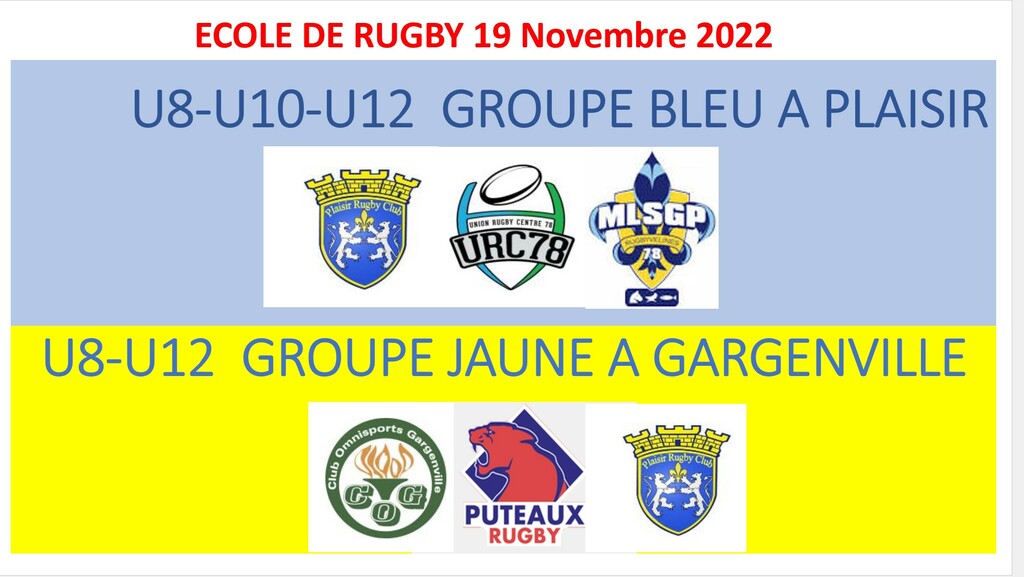 Nous vous confirmons les rencontres inter-départementale U8-U10-U12 qui nous opposeront les clubs de GARGENVILLE - PUTEAUX et PLAISIR