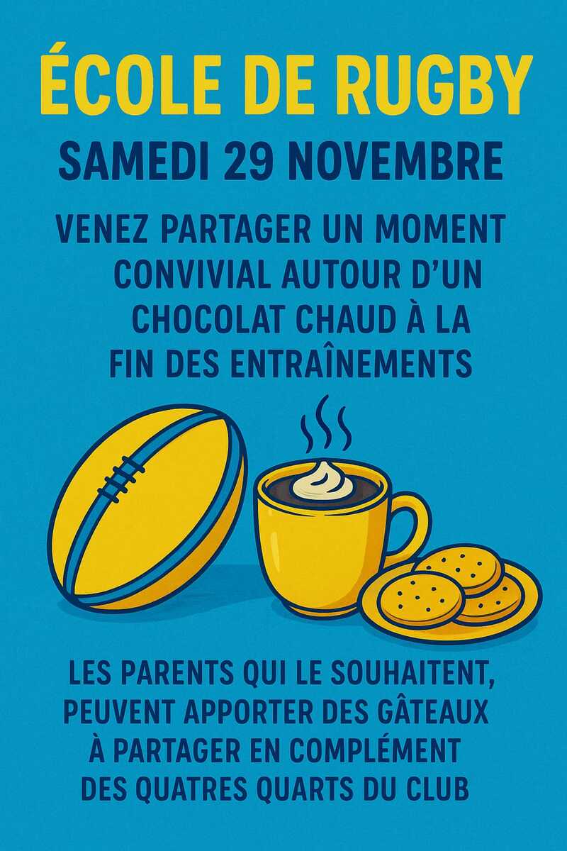 Avec l'ouverture de la prériode de l'Avent, nous vous proposons de clôturer cet entraînement par un moment convivial dans la salle de réception où les enfants pourront se réchauffer autour d'un chocolat chaud. Vos quiches ou patisseries seront les bienvenues.