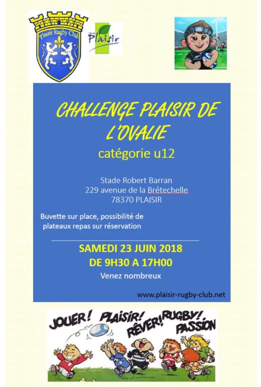 Samedi 23 Juin - 3ème édition du Challenge PLAISIR DE L'OVALIE