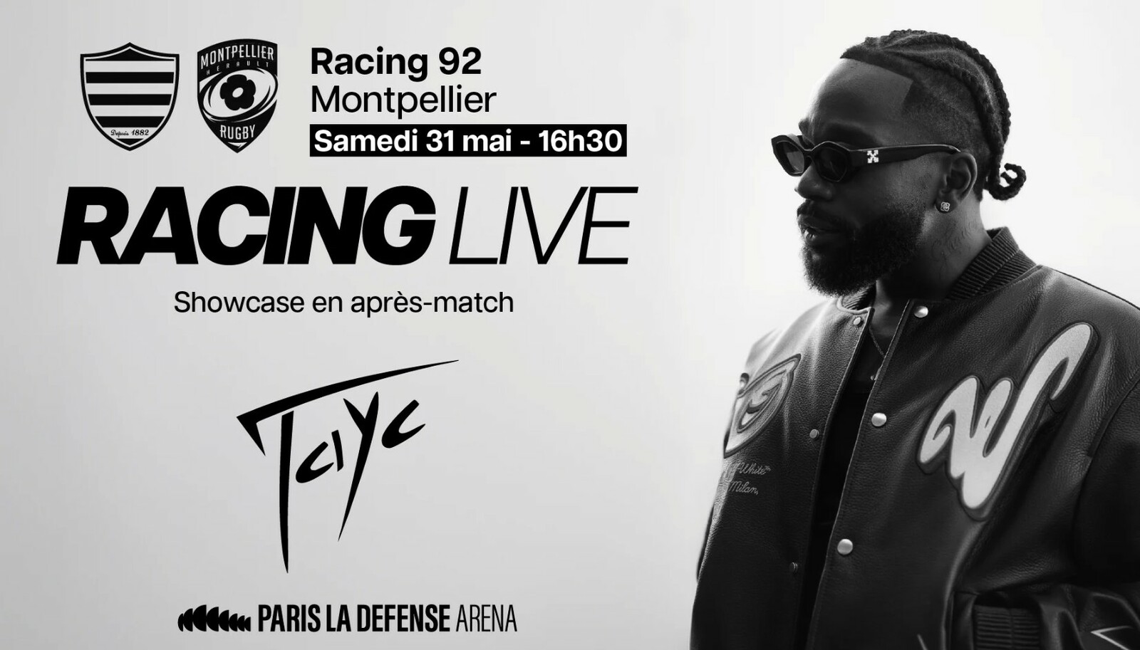 Vous retrouverez pour cette occasion une performance de l’artiste TAYC sur la scène de la bodega de Paris La Défense Arena en après-match.