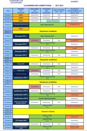 Pensez à prendre connaissance du CALENDRIER des prochains samedis de compétition !